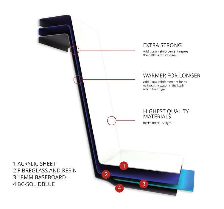 Amerina Corner Bath Left Handed Bath 1650 x 725mm (Left Hand Bath Shown in Images)