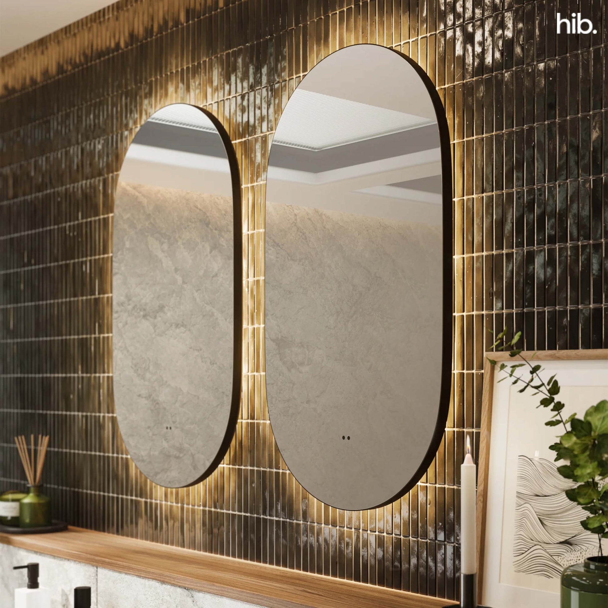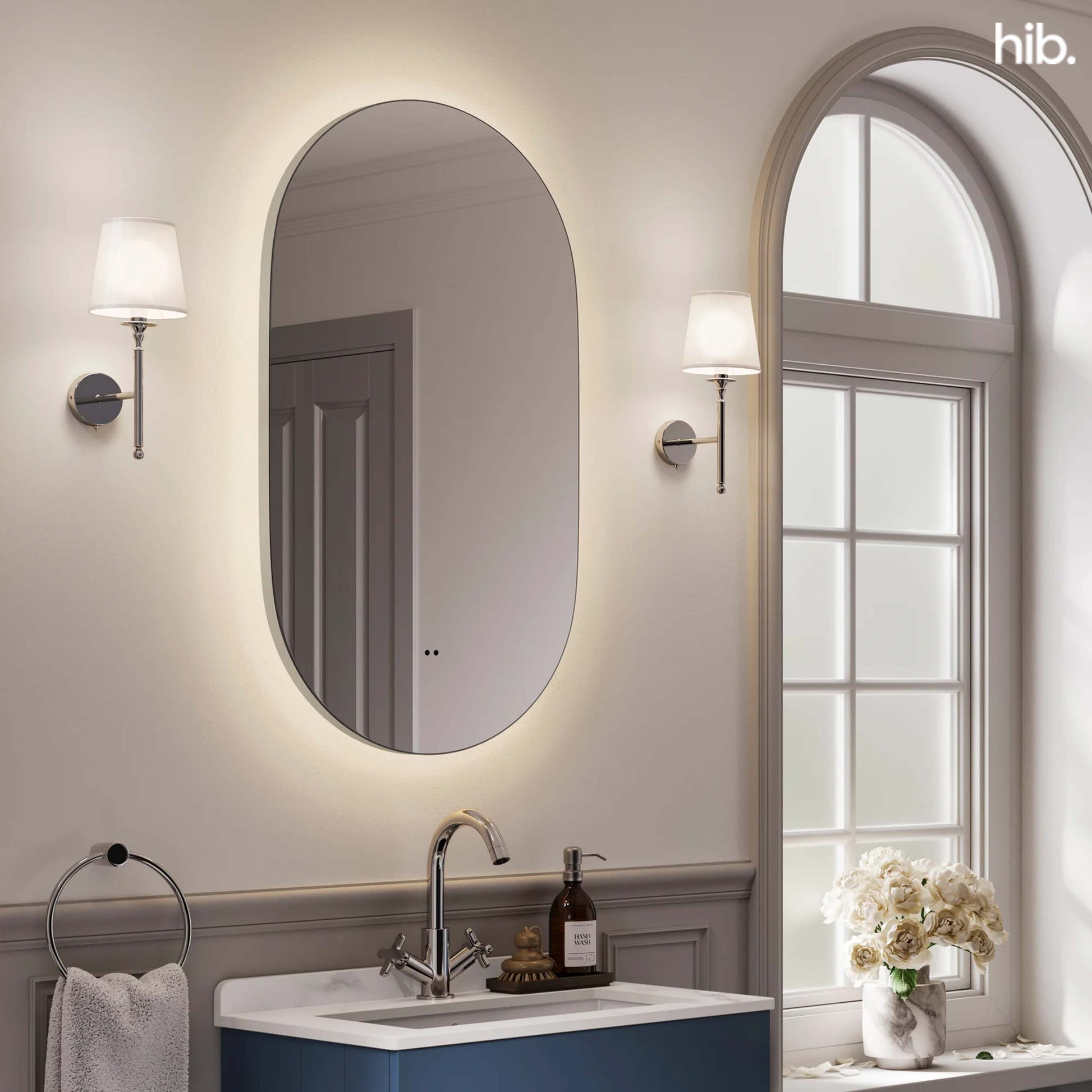 The HIB Arcane Pill 40 is a small, chic illuminated mirror perfect for an intimate bathroom or a cloakroom that does not sacrifice function for form. The LED light strip provides bright, even lighting for a grooming task, and the demister means this mirror won’t fog up after a shower. This stylish, rounded LED touch control mirror lends a sophisticated and functional vibe perfect for the modern bathroom.