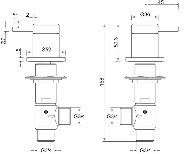 Hoxton Panel Valves in Matt Black Finish w/ 2 Tap Holes