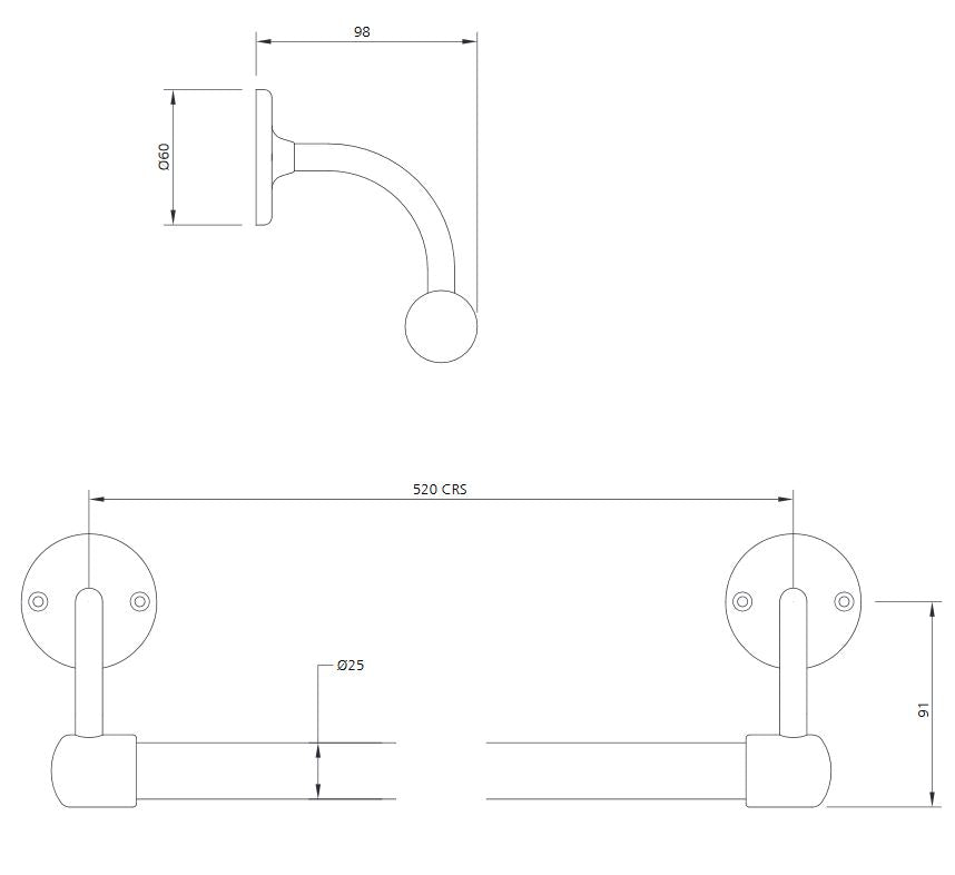 Lefroy Brooks Classic 508mm Towel Rail With Black Bar - Silver Nickel