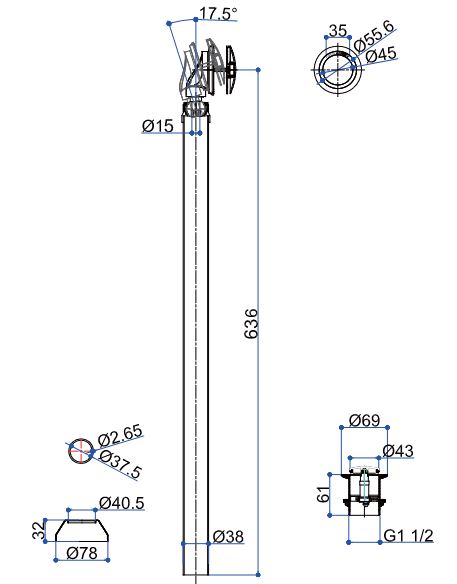 - Maximum height (floor to center of overflow) is 636 mm - pipe can be cut to length on site