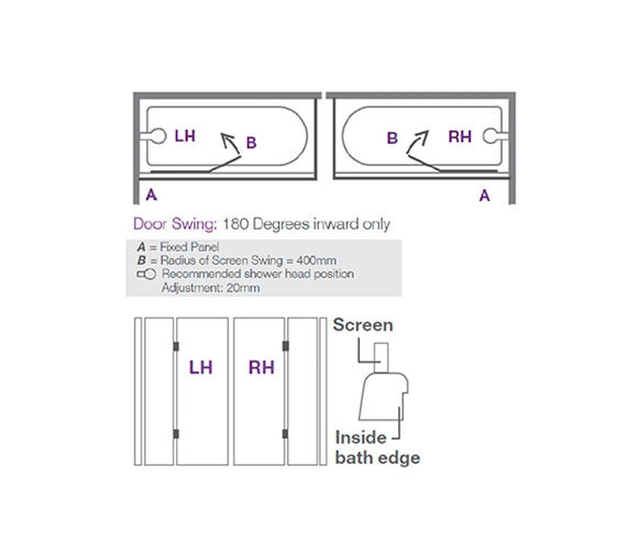 - Door Swing: 180 Degrees Inward Only