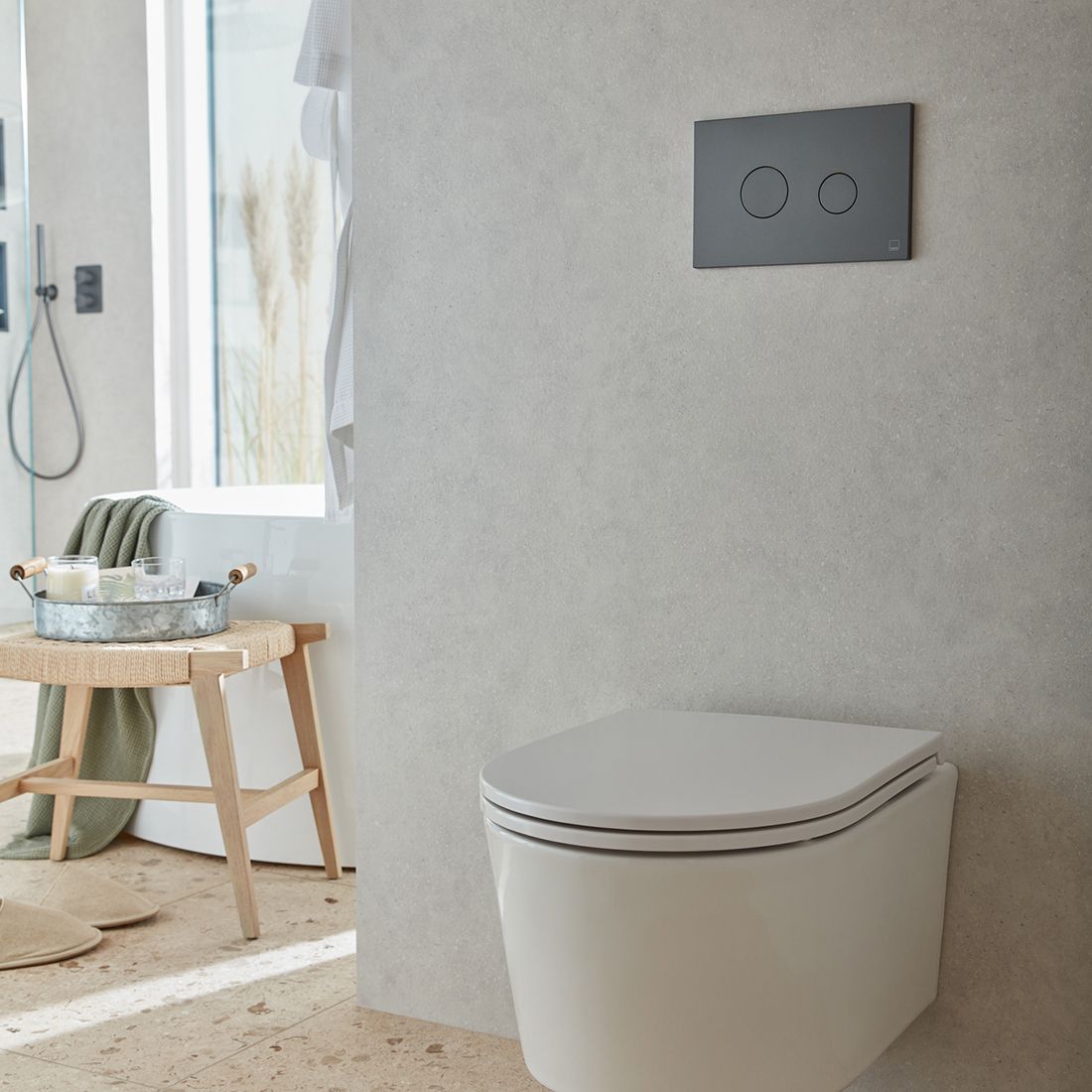 The Round Button Flush Plate by Vado, a perfect blend of durability and design, is an ideal choice for luxury bathroom spaces. This flush plate, equipped with two pneumatic actuation controls, offers both partial and complete flush options, promoting water conservation in a stylish way. The round dual flush trim kit, with its horizontal shape, ensures a seamless operation with tactile precision, allowing you to be environmentally responsible without compromising on style.